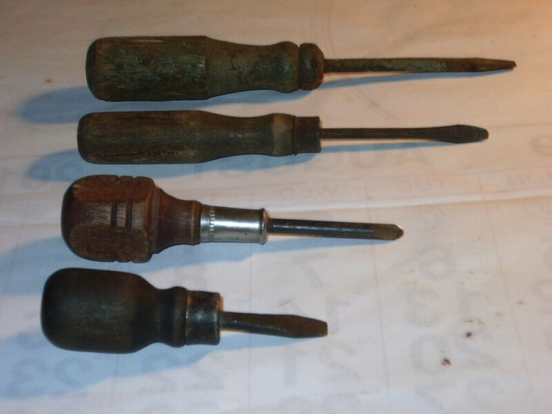 VINTAGE WOODEN HANDLE SCREWDRIVERS