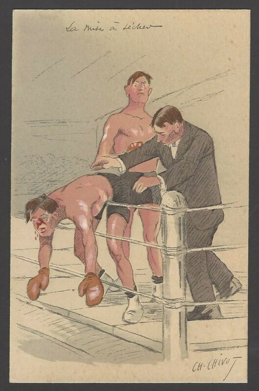 Vintage Boxing Humour artist signed postcard