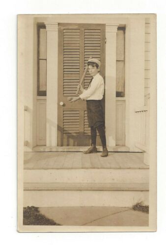 Title (ebay affiliate link): Postcard Young Boy on Porch With Baseball Bat and Ball Standard View RPPC