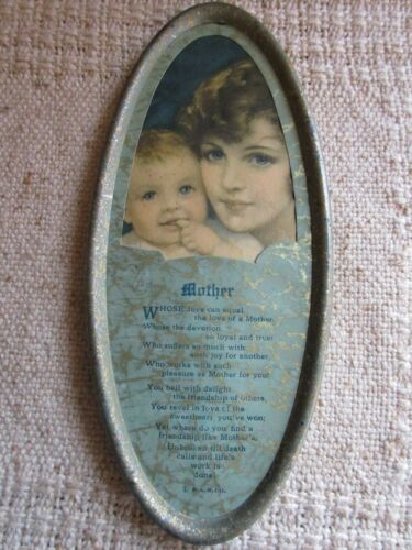 Vintage Picture - Mother Poem w/ Metal Oval Frame 7 1/2" x 3 3/8"