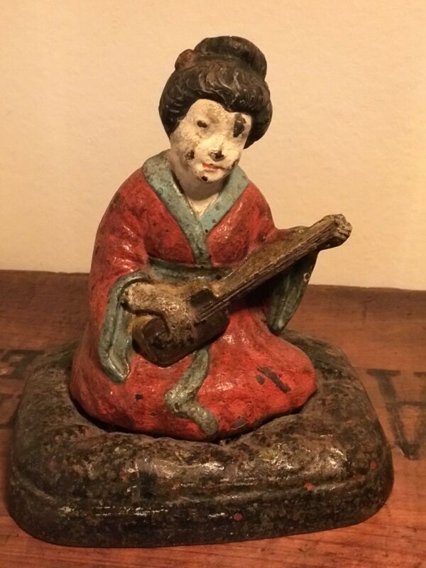 Antique Cast Iron Doorstop Giesha With Guitar NO RESERVE!!