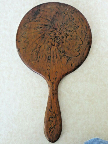 Title (ebay affiliate link): Antique Pyrography Hand Mirror Indian Chief in Headdress Beveled Glass