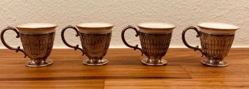 Antique Lot (4) Sterling Silver Tea Cups Holder w/ German Porcelain Cups