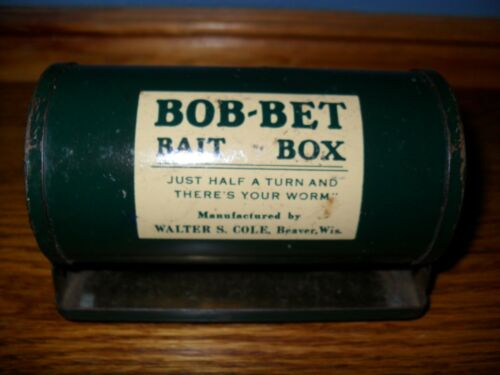 Title (ebay affiliate link): METAL BOB-BET BAIT BOX - WALTER S. COLE, BEAVER, WIS. - COLLECTIBLE!