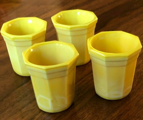 Title (ebay affiliate link): Rare Four Yellow Octagonal Tumblers Akro Agate Children''s Dishes