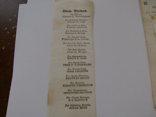 1863 Democratic Broadside Ticket Clement L. Vallandigham For Governor Of Ohio
