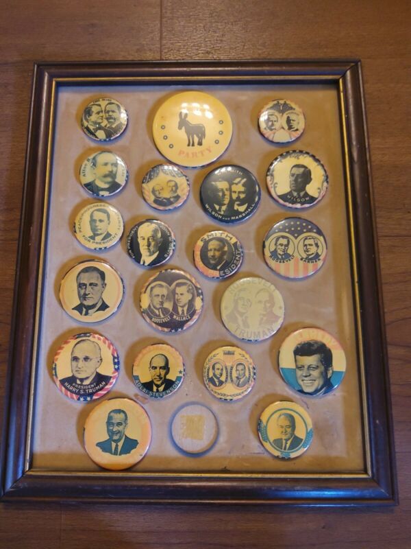 Title (ebay affiliate link): Vintage historical Democratic Party campaign buttons with plaque 12" x 15"