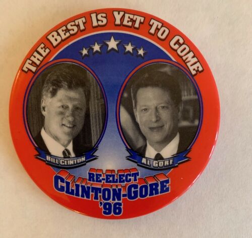 Title (ebay affiliate link): Bill Clinton & Al Gore 1996 Presidential Campaign Pin Button Political 3 INCH