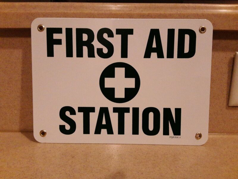 Vintage first aid station porcelain sign