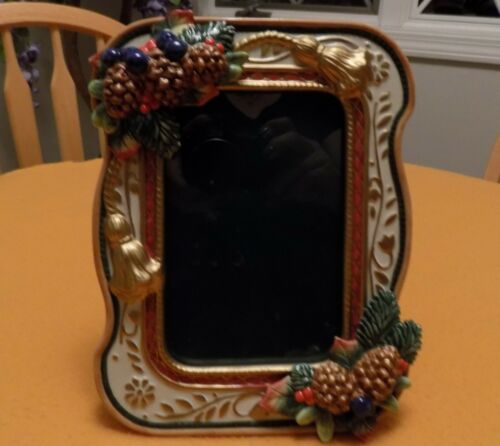 Fitz And Floyd 3.75 x 5.75" Fall Picture Frame, NEW, Berries,Pine Cones, Ribbon