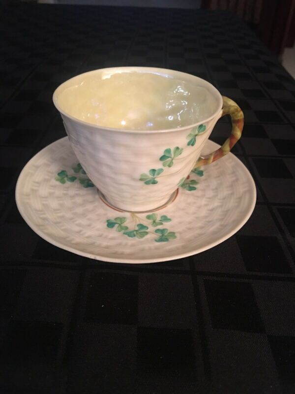 Title (ebay affiliate link): VINTAGE IRISH BELEEK BASKET WEAVE SHAMROCK PATTERN TEA CUP & SAUCER