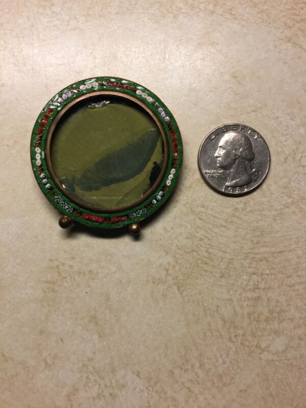 Vintage Micro Mosaic Floral Italian Italy Mini Round Picture Frame