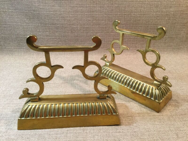 Antique English Georgian boot scraper Andirons Brass Hand Forged