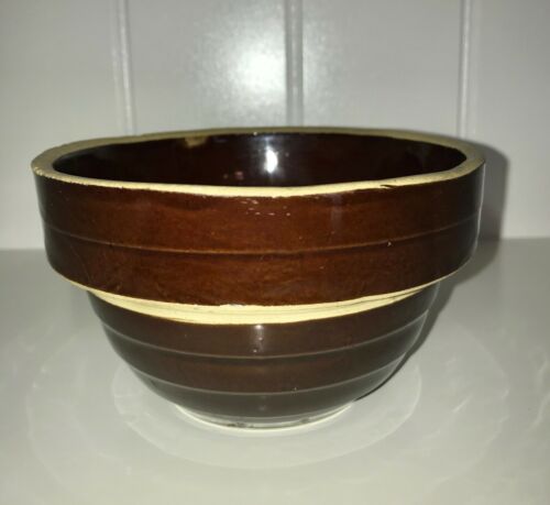 Antique Yellow Ware Bowl with Brown Glaze USA 5IN (5") Ribbed