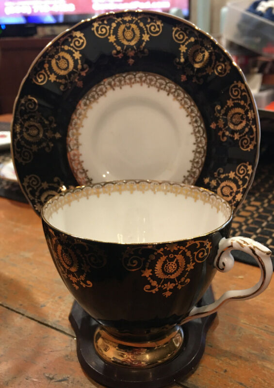 Title (ebay affiliate link): Vintage Tea Cup & Saucer ROYAL GRAFTON Fine Bone China England Black & Gold