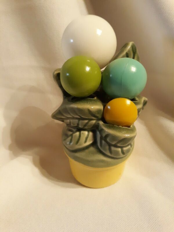 Title (ebay affiliate link): VINTAGE CERAMIC MEASURING SPOON HOLDER & PLASTIC SPOONS FLOWER POT (MCCOY?)