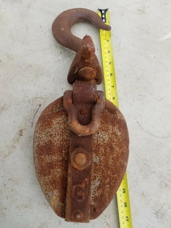 Title (ebay affiliate link): Vintage Rustic Metal 16 in. Block & Tackle Farm Decor