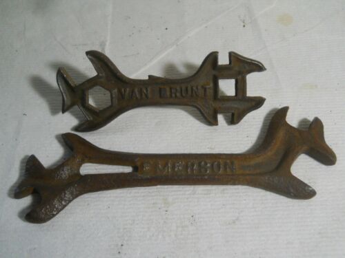 Title (ebay affiliate link): 2 ANTIQUE CAST IRON FARM WRENCHES MARKED EMERSON AND VAN BRUNT