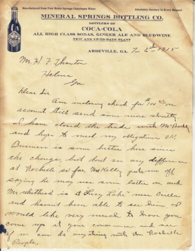 Title (ebay affiliate link): MINERAL SPRINGS BOTTLING CO. BOTTLERS OF COCA-COLA LETTERHEAD SELLS BLUDWINE #
