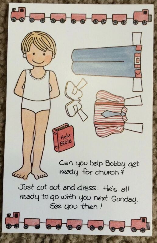 Title (ebay affiliate link): Vintage Paper Doll Post Card; Religious Theme; Unused; 1990