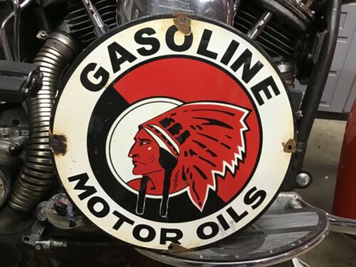 Title (ebay affiliate link): VINTAGE RARE PORCELAIN RED INDIAN MOTOR OILS PUMP PLATE Ford Harley Chevy Dodge