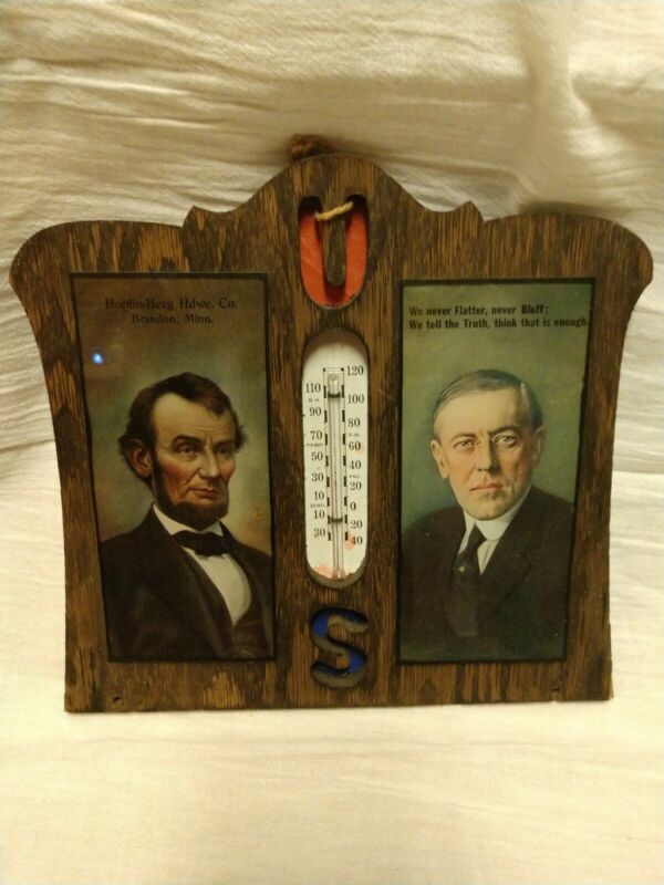 Brandon MN Wood Advertising Thermometer Sign VTG Hardware Store Lincoln Wilson