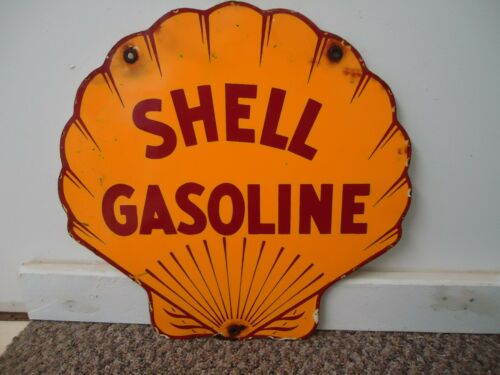 Title (ebay affiliate link): VINTAGE GOLDEN SHELL GASOLINE PORCELAIN GAS PUMP SIGN, GREAT COLORS YELLOW RED