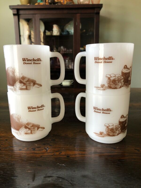 Title (ebay affiliate link): 4 Coffee Mug Milk Glass Winchell''s Donut House Glasbake Vintage Early 1980''s
