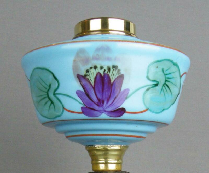 Art Nouveau Duplex Blue Milk Glass Kerosene Paraffin Oil Lamp Fount Font 22mm