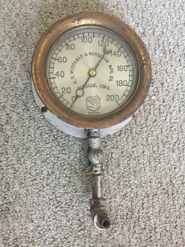 Vintage Brass Ashcroft Pressure Air Steam Gauge Dubuque Iowa Steampunk Gauge.