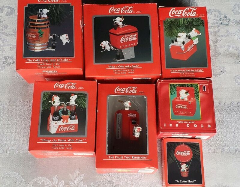 Title (ebay affiliate link): Lot Of x7 VINTAGE mint COCA- COLA ORNAMENTS In Box 1989-94''