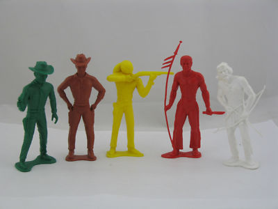 3 Cowboys & 2 Indians, plastic, 5 inches