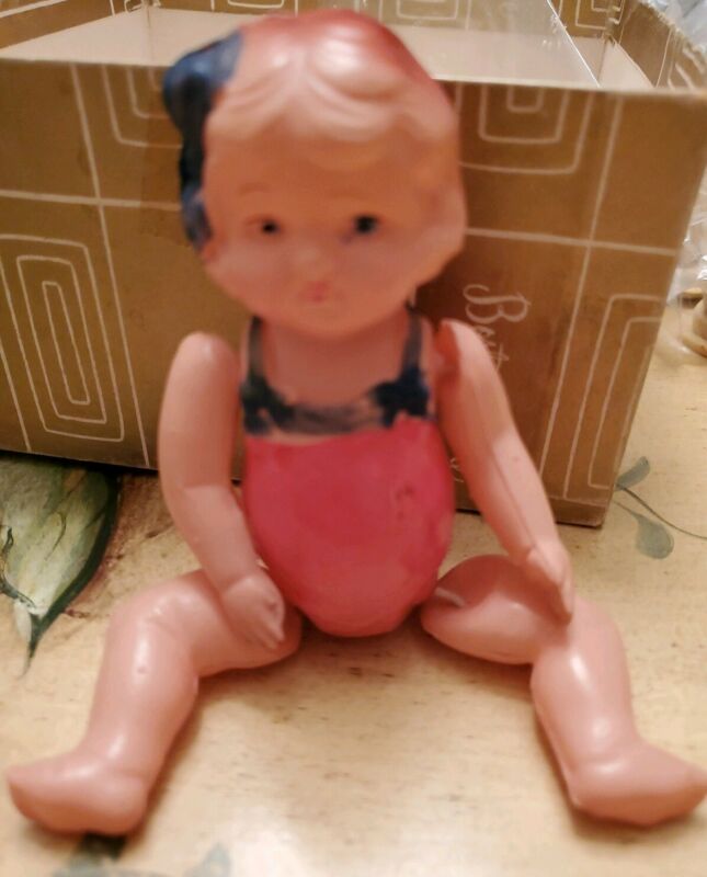 Title (ebay affiliate link): BATHING BEAUTY MINIATURE CELLULOID DOLL Antique Morimura Molded bow bathing suit