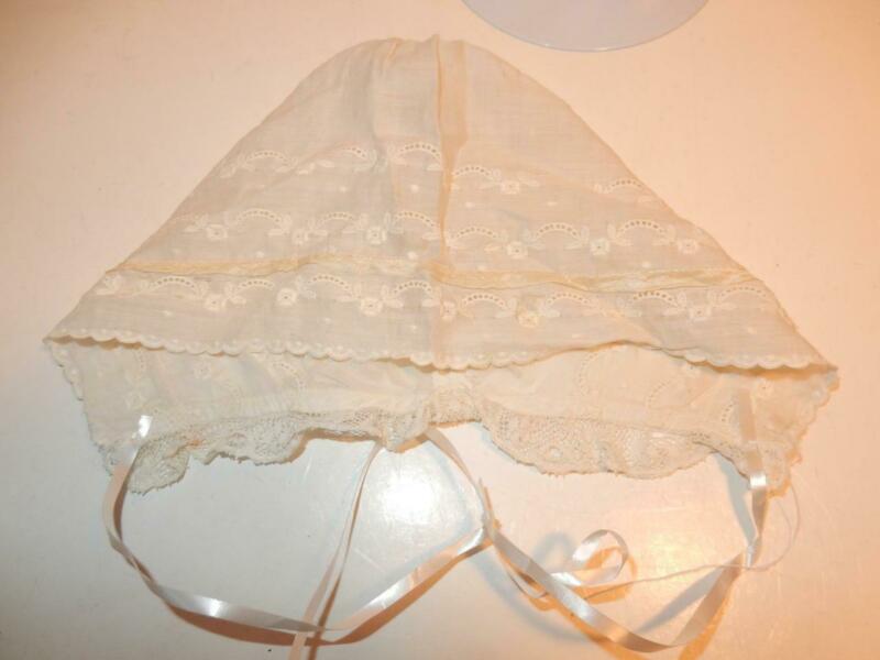 ANTIQUE OLD WHITE DOLL HAT BONNET GERMAN BISQUE COMPOSITION