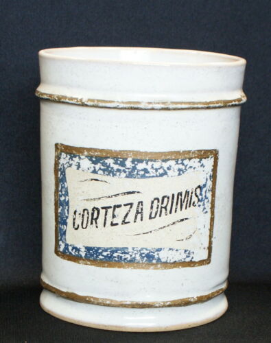 Title (ebay affiliate link): Antique 19th Cent Handthrown Stoneware Apothecary Jar Handpainted Corteza Drimis