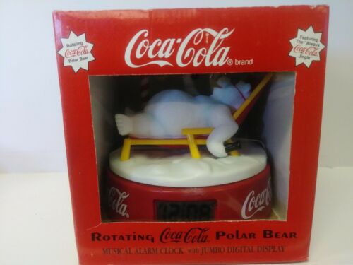 Vintage Coca Cola Alarm Clock! Polar Bear Rotating Musical Coke Collectible NIB!