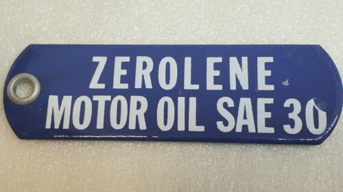 Title (ebay affiliate link): Vintage NOS Original Gasoline Porcelain Gas Pump Tag Zerolene Motor Oil SAE 30