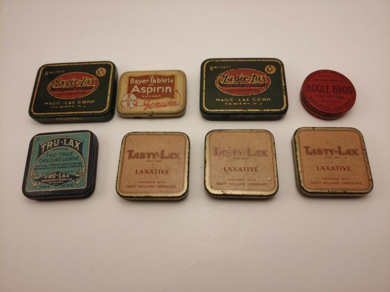 Title (ebay affiliate link): VINTAGE (7) DRUGSTORE TINS AND (1) OPTICAL GOODS TIN - GREAT LOT!