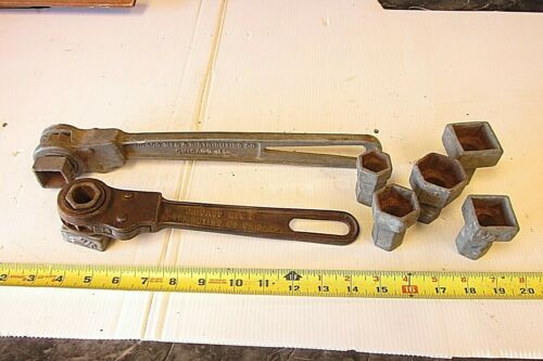 2 OLD ANTIQUE CHICAGO RATCHET WRENCH TOOL 7 SOCKETS 4 SQUARE NUT