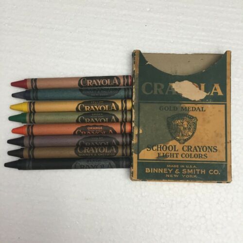 Title (ebay affiliate link): Vintage BINNEY & SMITH CRAYOLA Gold Medal Eight School Crayons