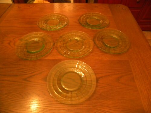 Title (ebay affiliate link): Set of 6 - Block Optic Green Depression Glass Saucers by Hocking Co.