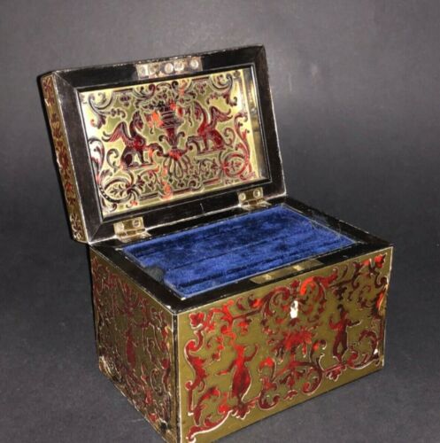 Title (ebay affiliate link): FINE ANTIQUE FRENCH BOULLE HORN GILT METAL JEWELRY OR SEWING BOX CASKET