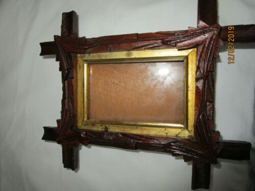 Title (ebay affiliate link): Vintage Folk Tramp Adirondack Art picture frame w/glass, hand carved leafs,