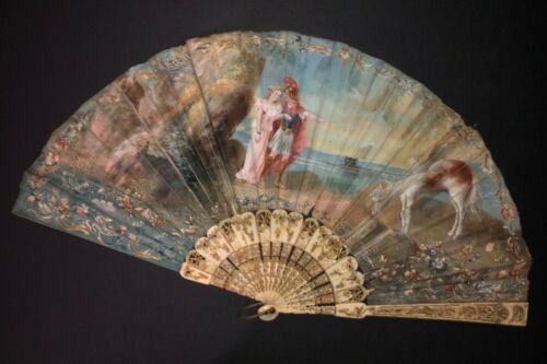 Title (ebay affiliate link): RARE ANTIQUE VICTORIAN HAND PAINTED MYTHOLOGICAL FIGURAL LANDSCAPE SCENE FAN
