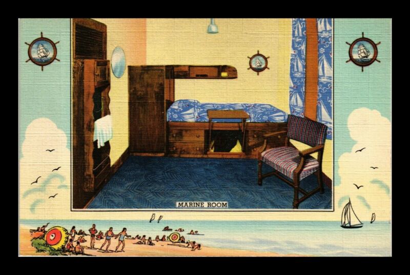 Title (ebay affiliate link): DR JIM STAMPS US MARINE ROOM YMCA HOTEL CHICAGO ILLINOIS LINEN VIEW POSTCARD