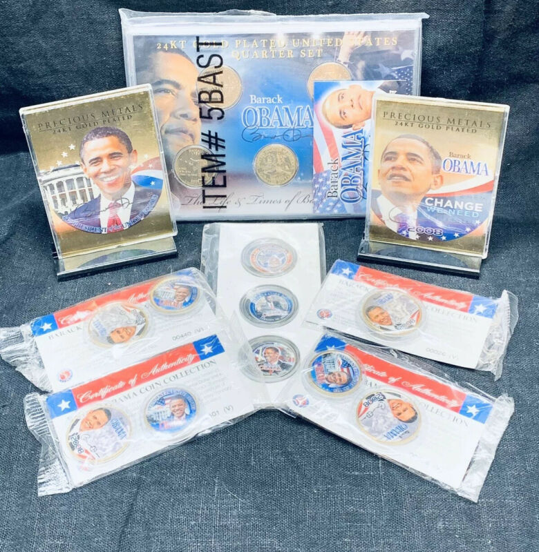 Title (ebay affiliate link): Lot of *8* President Obama Commemorative Coins & 24K Plated Cards Collectible