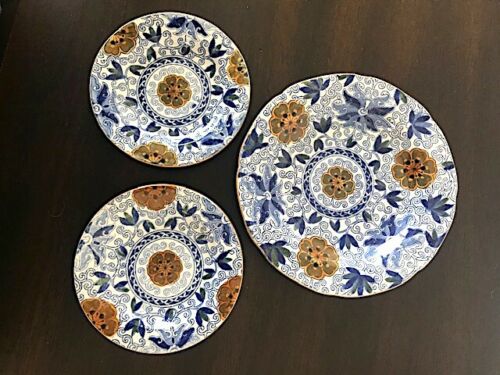 Unique Antique DAVENPORT CHILD''S PLATES (3) in Multi-colored Pattern c 1830