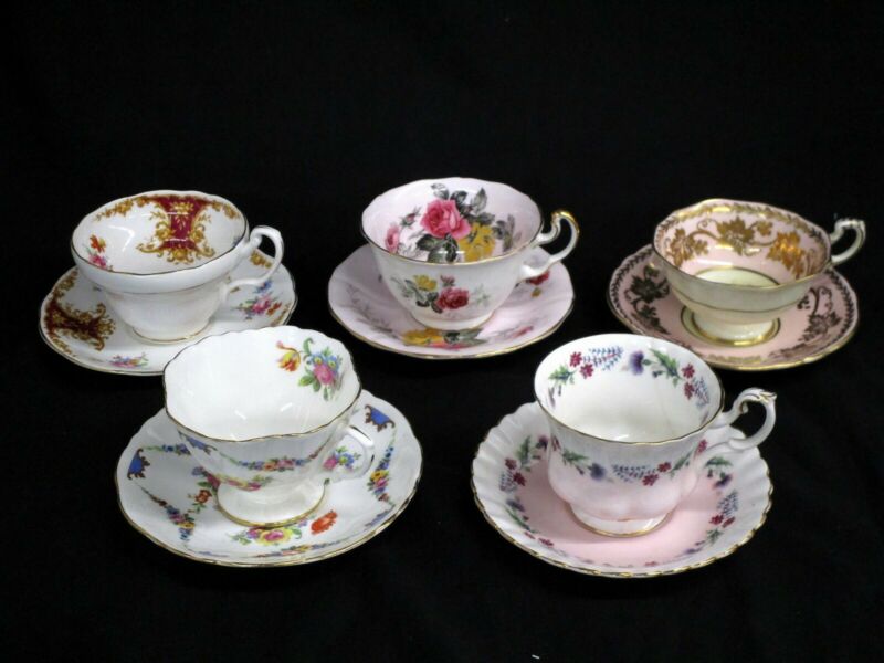 5 Assorted Vintage Fine Bone China Tea Cups & Saucers Hammersley Foley Adderley+