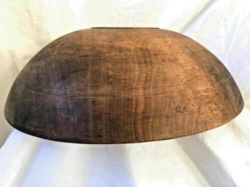 VINTAGE LARGE OUT OF ROUND RIMMED WOOD BOWL 17 x 16 1/2