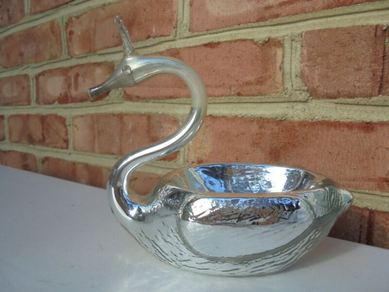 Antique German Blown Mercury Glass Swan Figural Open Master Salt Germany w Tag